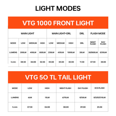 This item is the combo kit with the front light VTG 1000 and the rear taillight VTG 50 TL in color Classic Black.